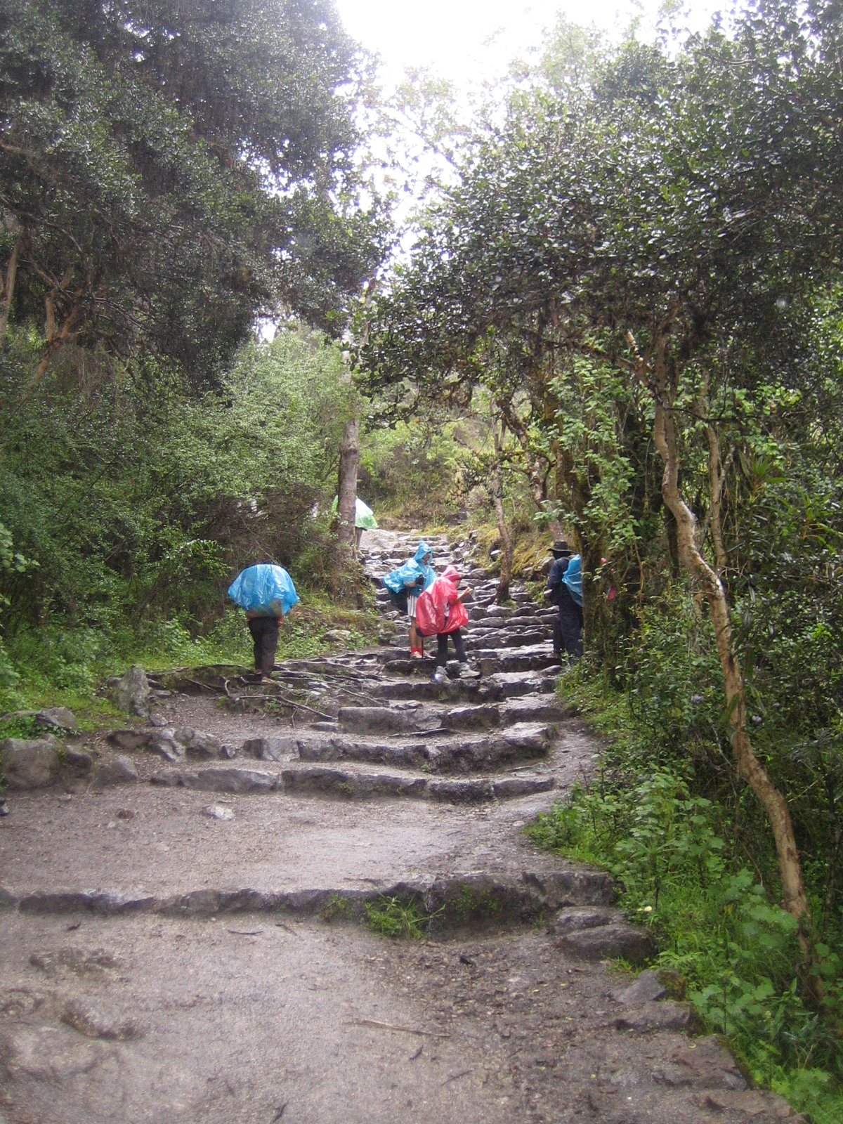 Der 3. und 4. Tag waren danach nur noch so etwas wie Pustekuchen. Obwohl es all die Treppen einem nicht einfach machten … Und das Wetter war leider auch nicht berauschend. Sehen konnten wir aufgrund des Nebels unterwegs praktisch nichts & zwischendurch regnete es immer wieder leicht … Na ja .. zu dieser Jahreszeit gibt es schlimmeres … es haette auch alle 4 Tage aus allen Wolken giessen koennen … so konnten wir uns gluecklich schaetzen! π Das Erreichen des Sungates sowie der Abstieg zum Machu Picchu auf 2400m war absoluter hammer!! Nach 3.5 anstrengenden Tagen den Anblick dieser Inka Staette vor sich zuhaben, ist ein absoluter Traum!! Die Anstrenung war es definitiv wert!! An diesem 4 Tag verblieben wir fuer ein paar Stunden in der Ruine und begaben uns schliesslich zurueck nach Cusco wo es sich zu erholen galt und das erlebte entsprechend zu feiern …! π